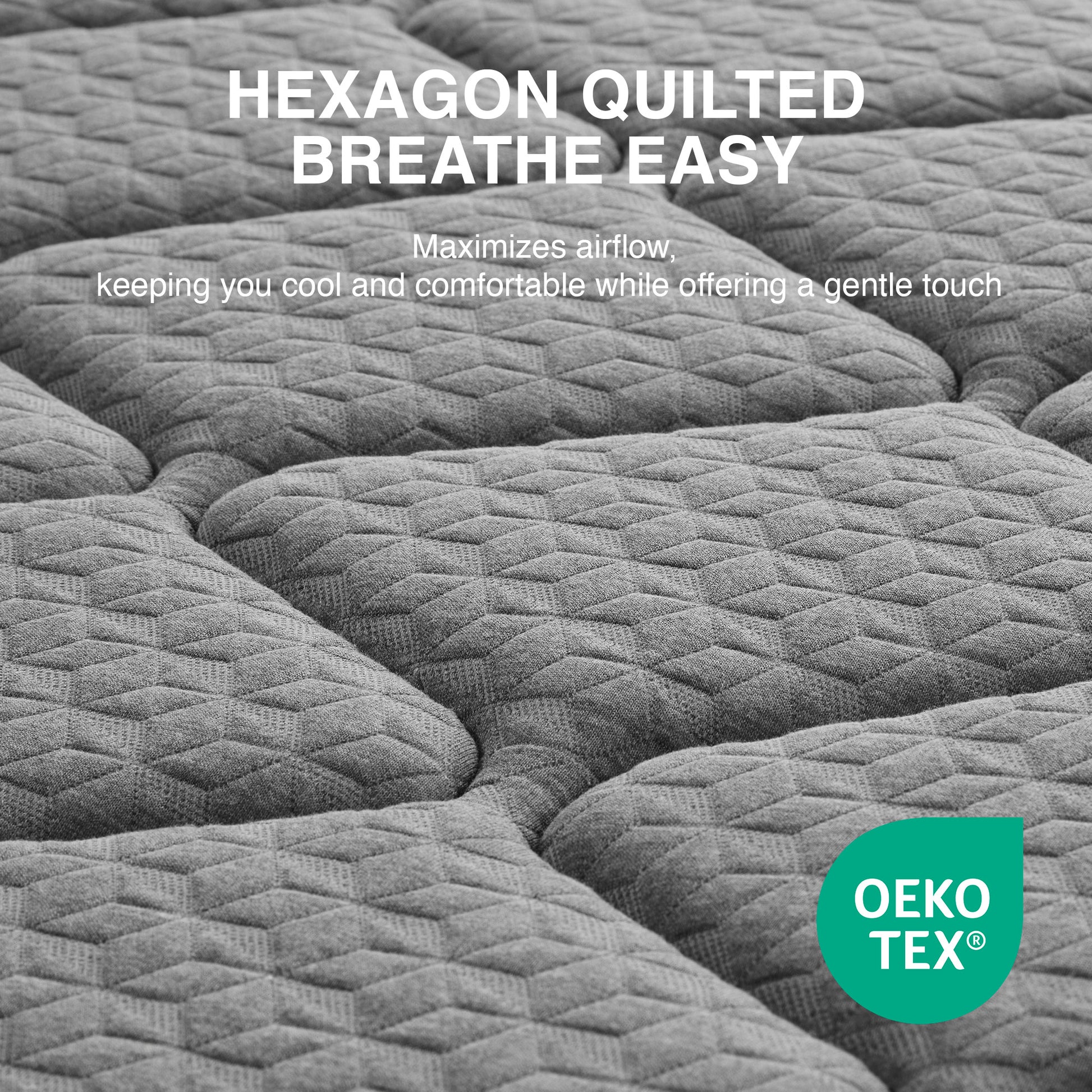 Hexagon Quilted, Breathe Easy: The unique hexagon quilted design maximizes airflow, keeping you cool and comfortable throughout the night while providing a gentle touch for enhanced relaxation.