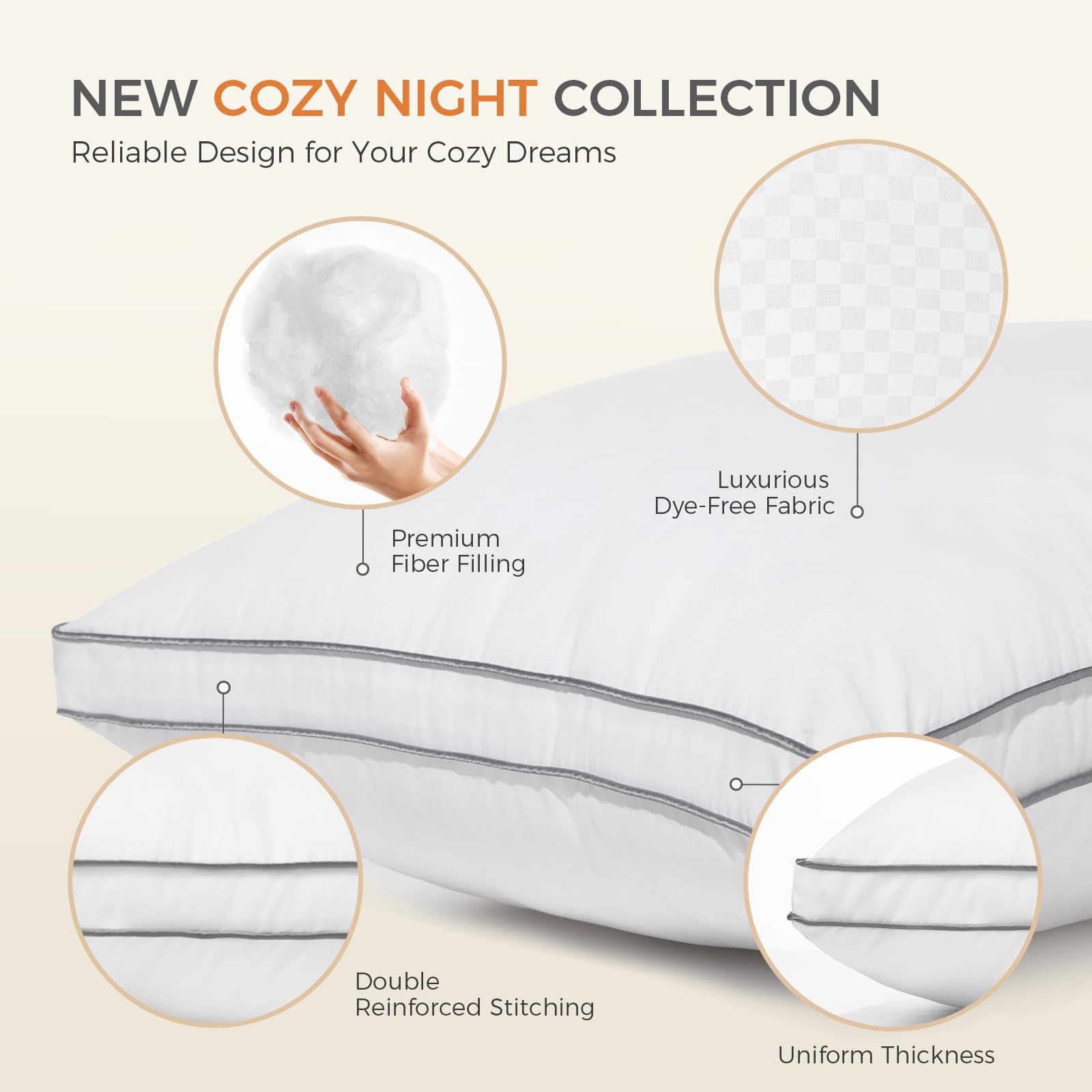- LUXURIOUS DOUBLE REINFORCED STITCHING DESIGN : Compared with ordinary single-sided pillows, the pillows queen size set of 2 have a more uniform overall thickness and a smooth transition in pillow height, providing you with more adequate neck support